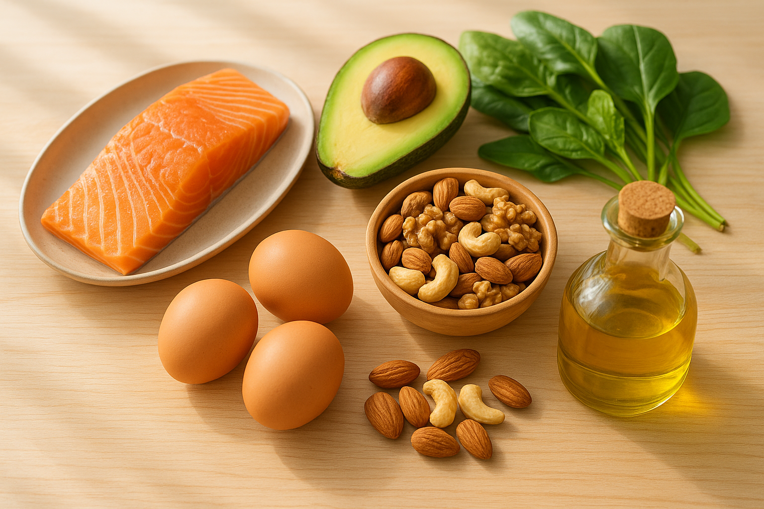 - Chất béo tốt (Omega-3, DHA, EPA): Có nhiều trong dầu cá, cá hồi, cá thu, hạt óc chó, hạt chia. Omega-3 giúp bảo vệ tế bào thần kinh và cải thiện chức năng dẫn truyền thần kinh.